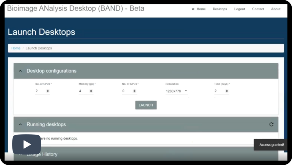 Watch this video of first steps to get access to the EMBL BAND instance and launch your first remote analysis desktop session. Check it out.