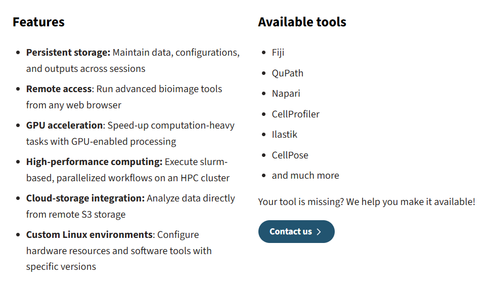 BAND is particularly suitable for your bioimage analysis workflows that require access to cluster computing. It is ideal for researchers who need both interactive exploration and large-scale batch analysis.